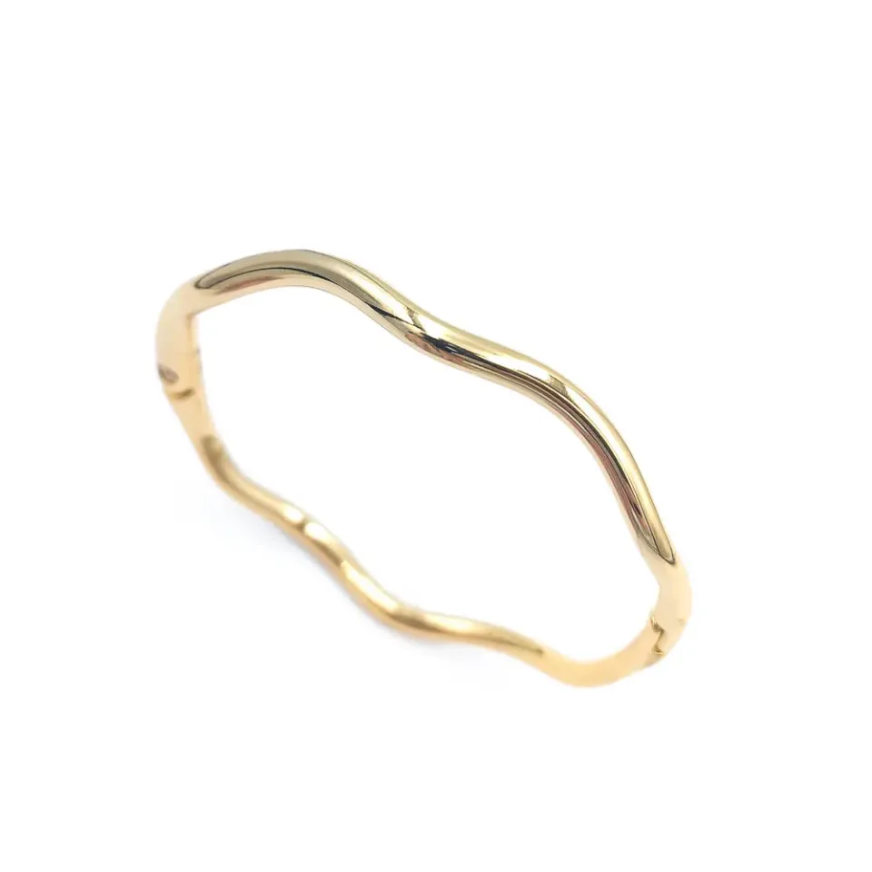 Acessório perfeito para tornar seu look moderno e cheio de si! Ideal para dar o toque de estilo que estava faltando em sua composição, e o melhor de tudo é que esse bracelete é uma joia versátil e usado facilmente com outros acessórios. O bracelete tem um aro fino, liso e é todo ondulado, é banhado a ouro 18k e possui fechamento no sistema click. Uma peça lindíssima e essencial para usar em momentos casuais e formais para ficar ainda mais linda. Tem que ter no seu mix!